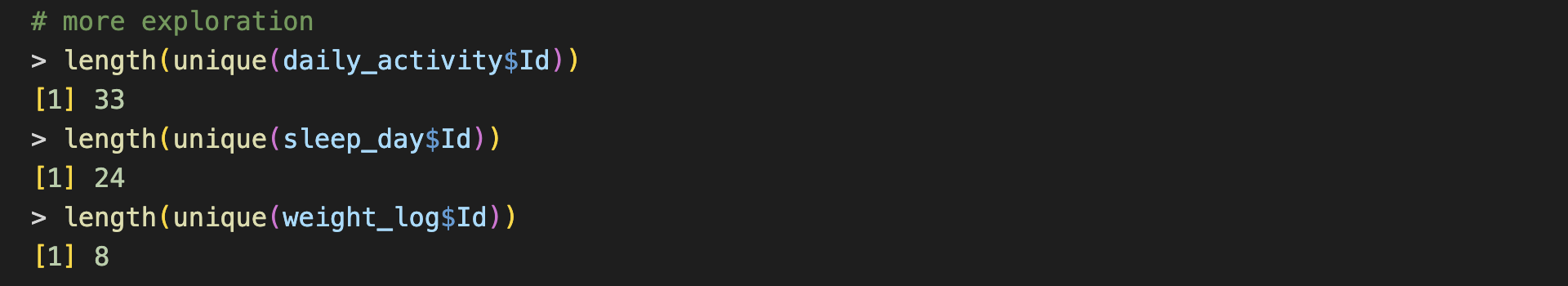 We can see the weight_log does not have enough Id logs to give us sufficient evidence of unique weight logs. I will be removing the data.
